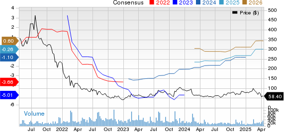 The Zacks Consensus Estimate for 2025 revenues is pegged at $4.59 billion, suggesting 11.52% year-over-year growth. The consensus estimate is pegged at a loss of 26 cents per share, indicating an improvement of 70.79% year over year.