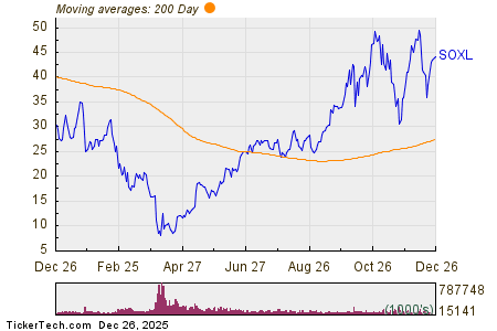 Direxion Daily Semiconductors Bull 3x Shares 200 Day Moving Average Chart