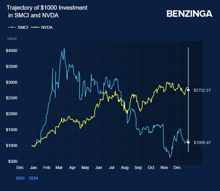 Price Actions: At last check on Friday, SMCI stock was down 5.00% to $32.06. NVDA is down 2.62%.