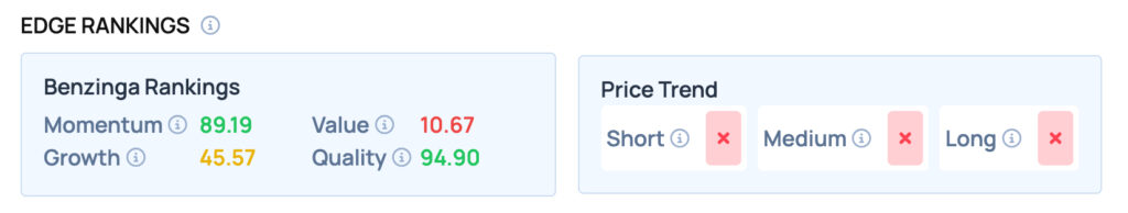 Benzinga Rankings give you vital metrics on any stock – anytime.