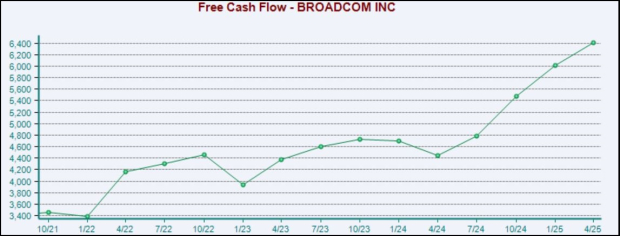 Broadcom, currently a Zacks Rank #2 (Buy), has quickly entered the AI race, evolving a broad portfolio of technologies to extend its leadership in enabling next-generation AI infrastructure. The stock has long been a favorite among those seeking tech exposure paired with paydays, with the company’s strong cash-generating abilities allowing it to consistently reward shareholders in a big way over its history.