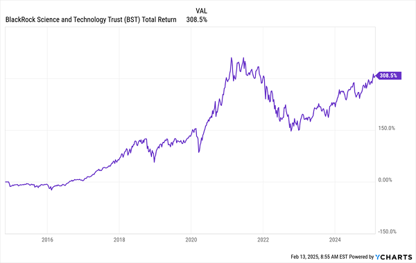 BlackRock (NYSE:) is the world’s largest asset manager, with over $10 trillion in assets. It has all the connections and resources that come with that status. That’s helped the BlackRock Science and Technology Trust (NYSE:) return over 308% (including dividends) since its IPO a little over a decade ago. (BST is a holding of my CEF Insider service.)