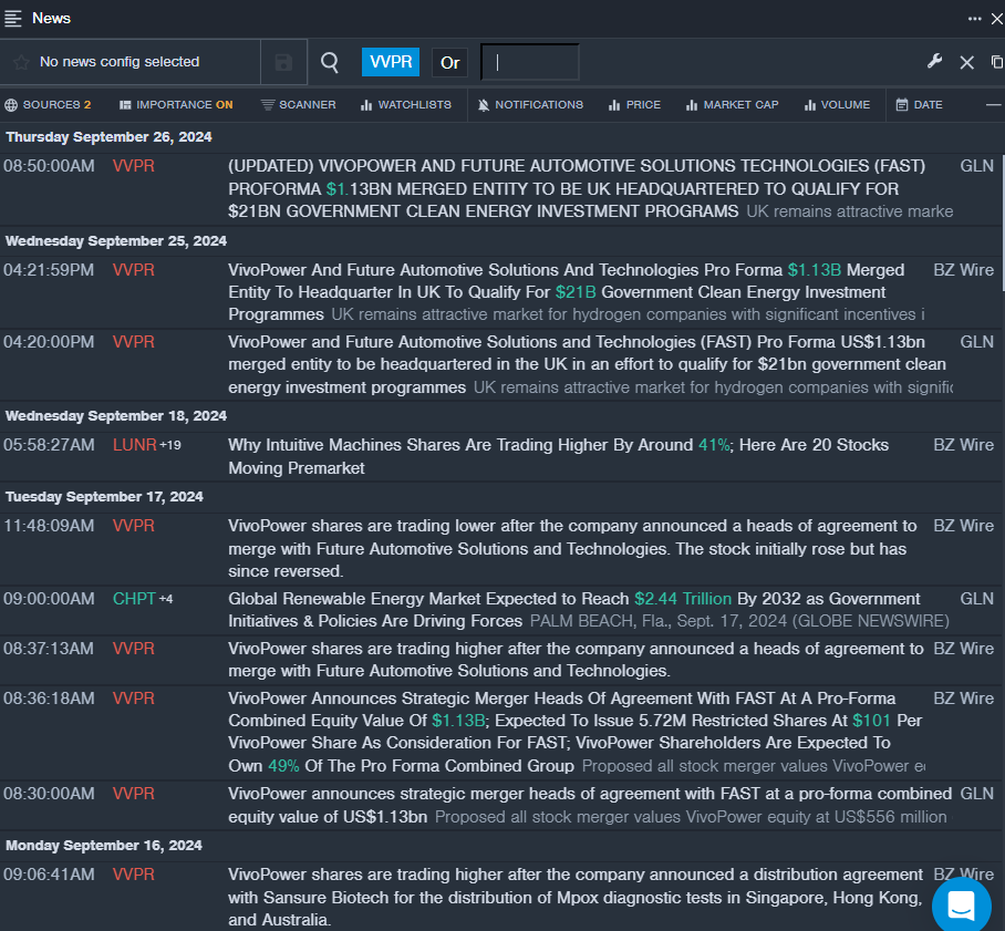 - Recently, VivoPower International PLC made waves by announcing a heads of agreement for a transformative merger with Future Automotive Solutions and Technologies. Despite this strategic move, the company’s stock plummeted by approximately 42% in the past month, hitting a 52-week low of $1.02.