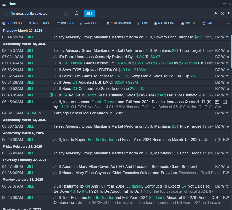 - Benzinga Pro’s real-time newsfeed alerted to latest JILL news.