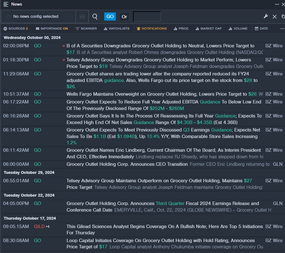 - GO Price Action: Shares of Grocery Outlet fell 16.3% to close at $13.90 on Wednesday.