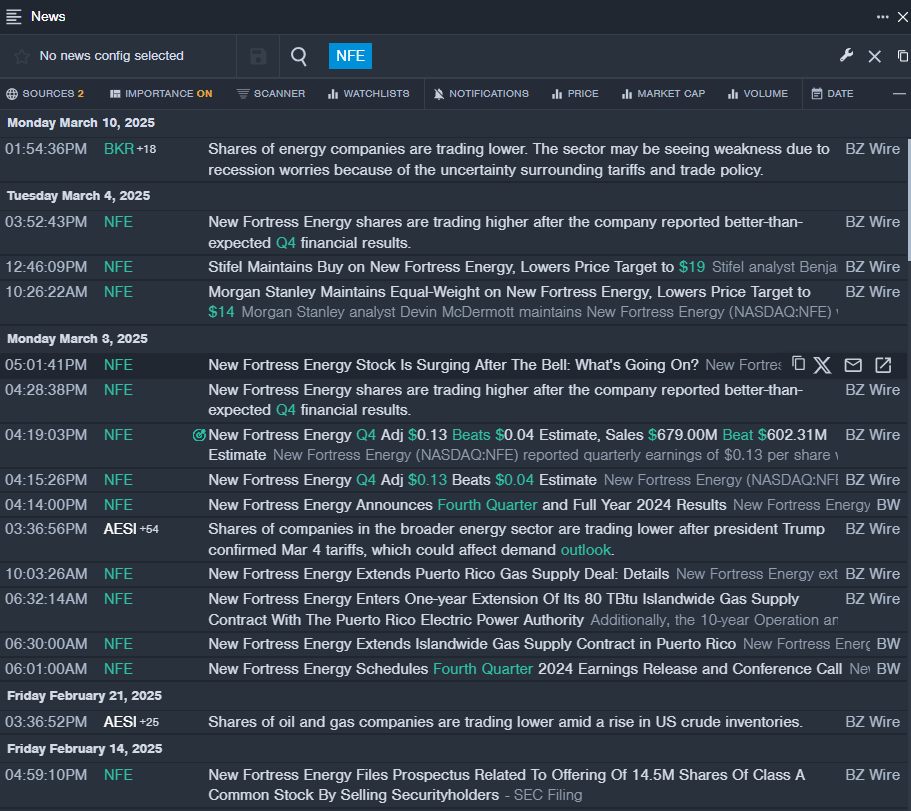 - Benzinga Pro’s real-time newsfeed alerted to latest NFE news.