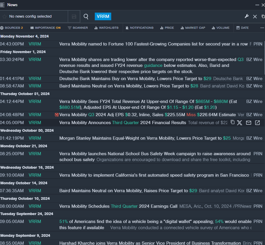 • Benzinga Pro’s real-time newsfeed alerted to latest VRRM news.