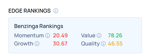 - Edge Stock Ratings: 20.49 Momentum score with Value at 78.26.