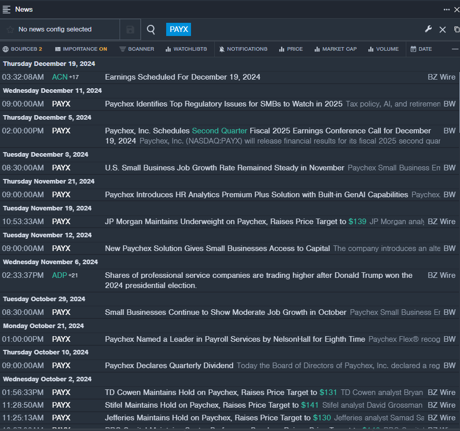 • Benzinga Pro’s real-time newsfeed alerted to latest PAYX news.
