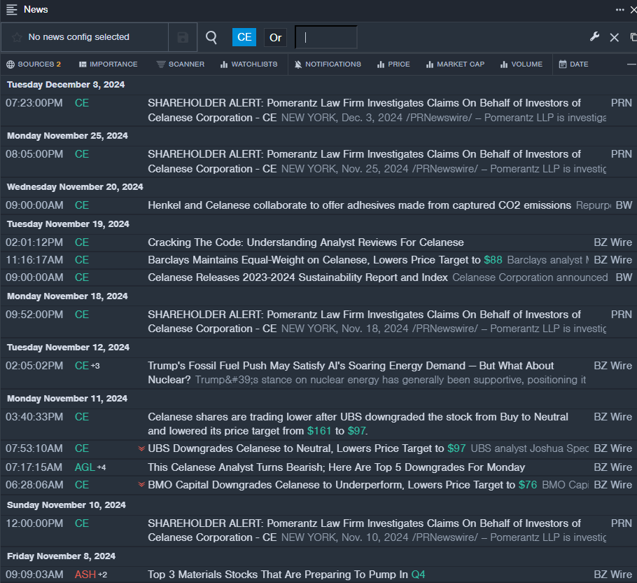 - CE Price Action: Shares of Celanese gained 1.6% to close at $70.54 on Friday.