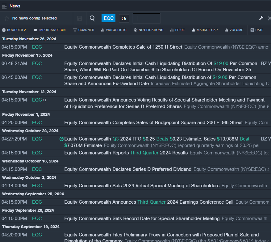 - Benzinga Pro’s real-time newsfeed alerted to latest EQC news.