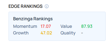 - Edge Stock Ratings: 17.07 Momentum score with Value at 87.93.