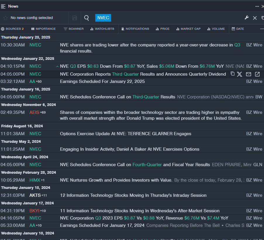 • Benzinga Pro’s real-time newsfeed alerted to latest NVEC news.