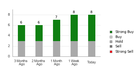 Toyota Motor currently has an average brokerage recommendation (ABR) of 1.75, on a scale of 1 to 5 (Strong Buy to Strong Sell), calculated based on the actual recommendations (Buy, Hold, Sell, etc.) made by eight brokerage firms. An ABR of 1.75 approximates between Strong Buy and Buy.