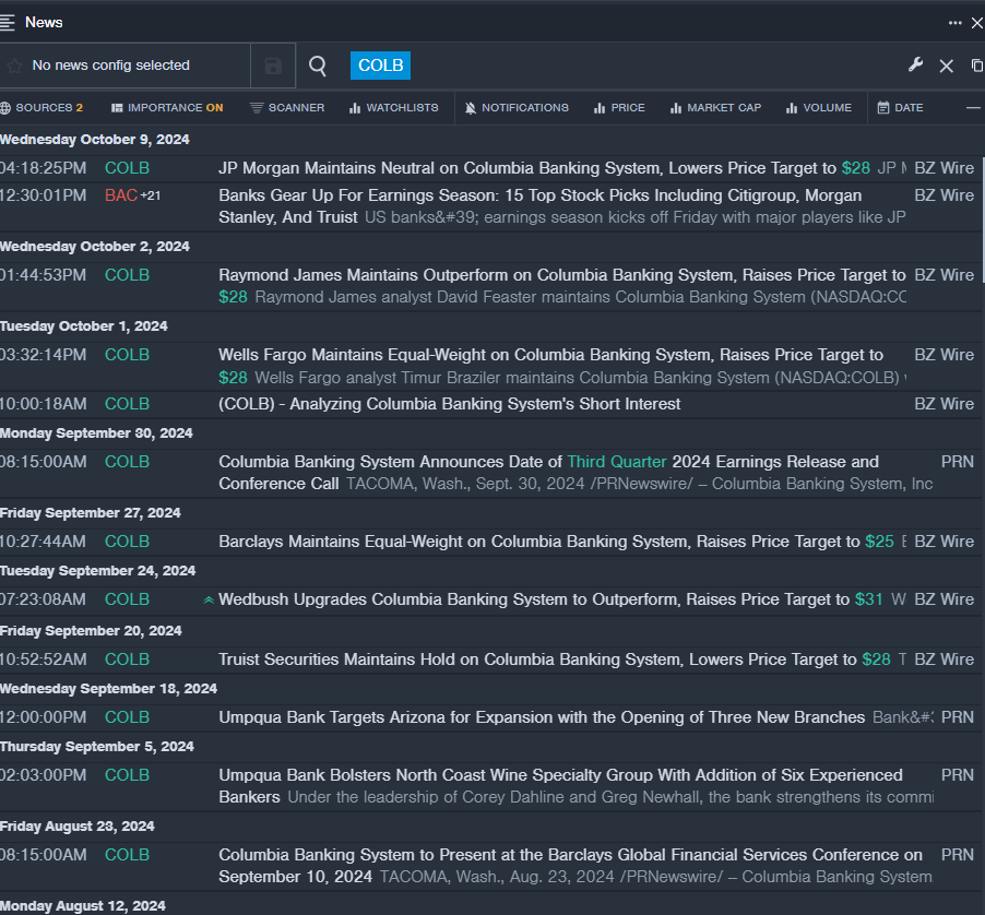- JP Morgan analyst Steven Alexopoulos, known for his 71% accuracy rate, maintained a Neutral rating with a revised price target for Columbia Banking System, Inc. Despite the stormy market climate, Raymond James analyst David Feaster marched forward with an Outperform rating, raising the price target, anchoring investor confidence in the company.