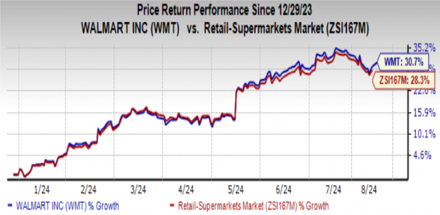 As the curtain falls on another tumultuous year, Walmart Inc. finds itself basking in the golden glow of success, with its shares gleefully skipping up by a staggering 30.7% year-to-date. This figure places the retail giant marginally ahead of the entire Retail – Supermarkets industry, which clocked a 28.3% rise over the same period. Walmart’s stocks stealthily breached their resistance levels in mid-May this year, propelling them into a sustained upward spiral.