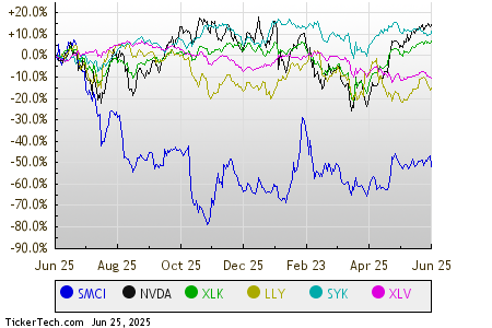 Looking at the sectors faring best as of midday Wednesday, shares of Technology & Communications companies are outperforming other sectors, losing just 0.2%. Within that group, Super Micro Computer Inc (Symbol: SMCI) and NVIDIA Corp (Symbol: NVDA) are two large stocks leading the way, showing a gain of 8.0% and 3.9%, respectively. Among technology ETFs, one ETF following the sector is the Technology Select Sector SPDR ETF (Symbol: XLK), which is up 0.6% on the day, and up 7.29% year-to-date. Super Micro Computer Inc, meanwhile, is up 51.80% year-to-date, and NVIDIA Corp is up 14.39% year-to-date. Combined, SMCI and NVDA make up approximately 14.7% of the underlying holdings of XLK.