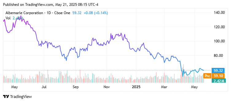 As of May 2025, institutional buyers from the Vanguard Group decided to boost their holdings in Albemarle stock by 0.5%. While this may not sound like much on a percentage basis, the new allocation brought the group’s net position to a high of $1 billion, or 12.5% ownership in the company today.